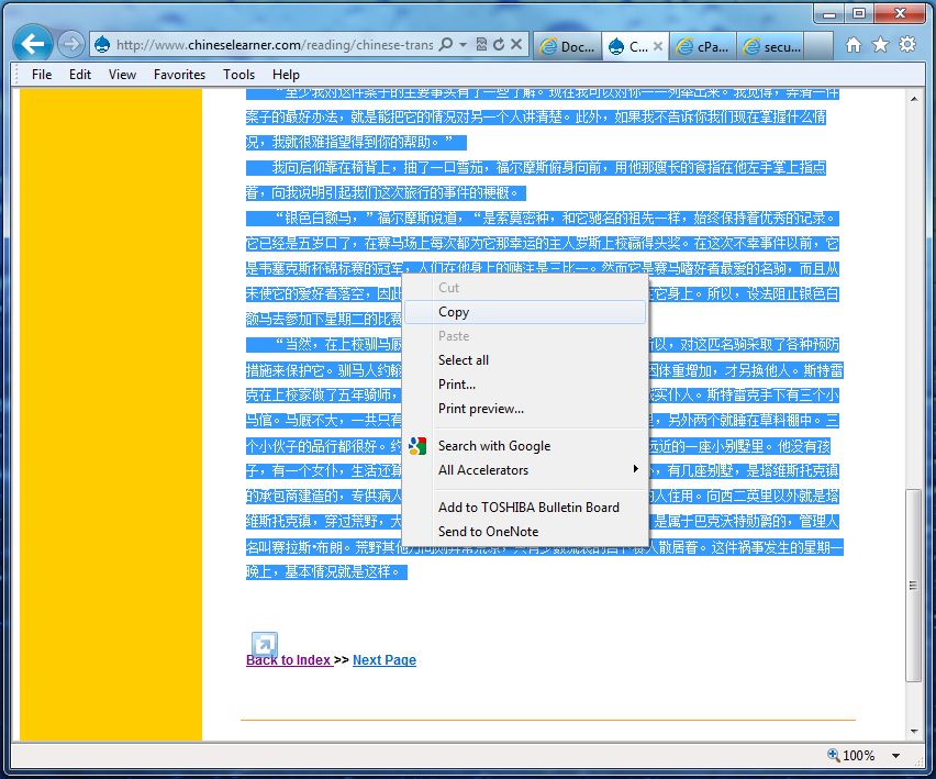 Let’s start with an example document, a story with lots of Chinese words. The text used in this example comes from www.chineselearner.com; it is the story “Silver Blaze” in simplified Mandarin.